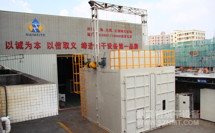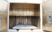 1、內膽尺寸:寬4500*高3500*深6000mm(前后分二段烘箱,單段深3000mm);