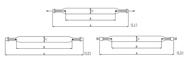 序號 圖號 功率 工件電壓(V) 工作電流(A) 全長A 極距B 管徑C 功率密度(W/mm) 備注